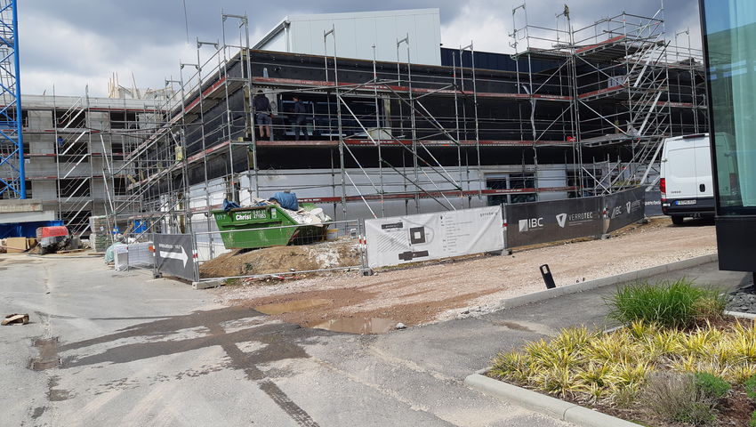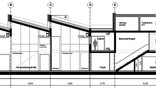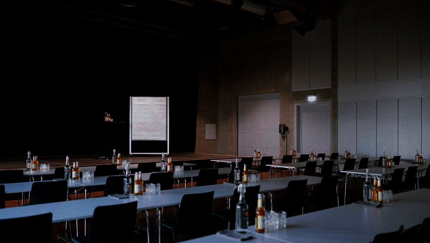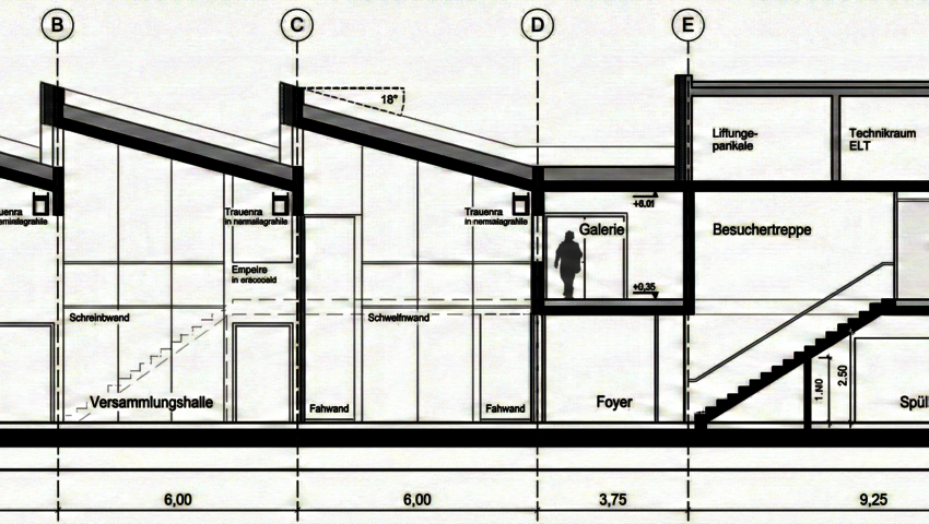 Neubau einer nichtunterkellerten, zweigeschossigen Veranstaltungshalle mit Gastronomie in Massivbauweise und zusätzlichem Staffelgeschoss (Stahlkonstruktion, Technik: Lüftungszentrale) auf dem Gonsberg Campus. Das L-förmige Gebäude weist eine Maximalabmessung von 31,0 x 22,5 m auf. Das Dach der Versammlungshalle wird mithilfe eines Holztragwerks (Spannweite 12,3 m) überspannt. Die Gründung erfolgt auf einer 40 cm dicken, elastisch gebetteten Bodenplatte. Die Nutzungseinheiten bzw. brandschutztechnisch separierten Bereiche gliedern sich im vorliegend betrachteten Gebäude wie folgt: Versammlungsraum EG, Küche und Gastronomiebereich sowie Foyer. Das Brandschutzkonzept berücksichtigt die Gebäudeklasse 3, Sonderbau nach LBauO, sowie die Versammlungsstättenverordnung (VStättVO).